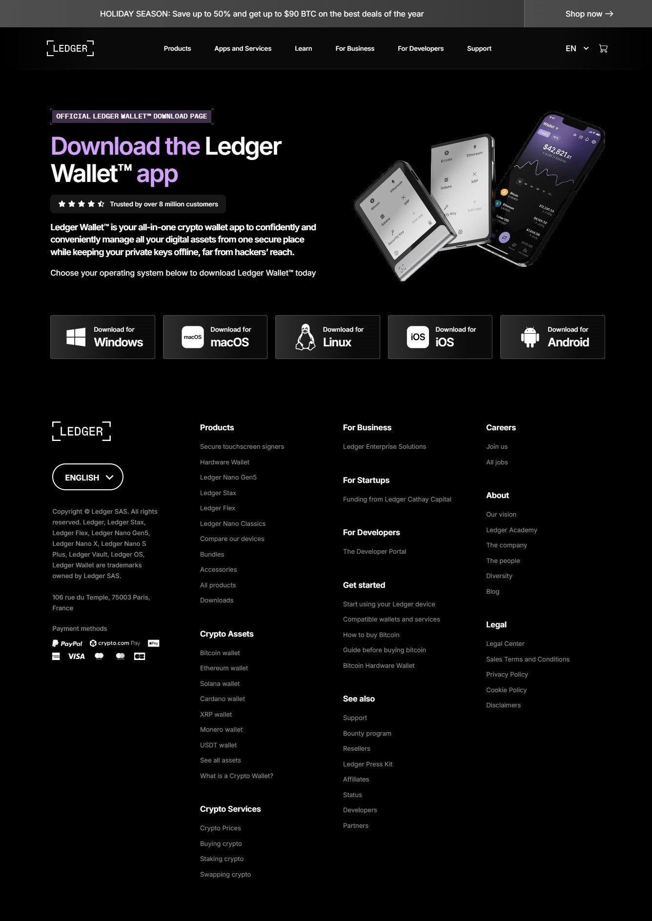 The platform does not hold user funds; it simply enables secure interaction with the Ledger hardware wallet.